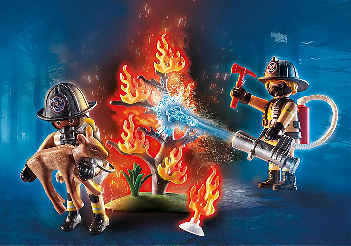 Pompiers et arbre en feu